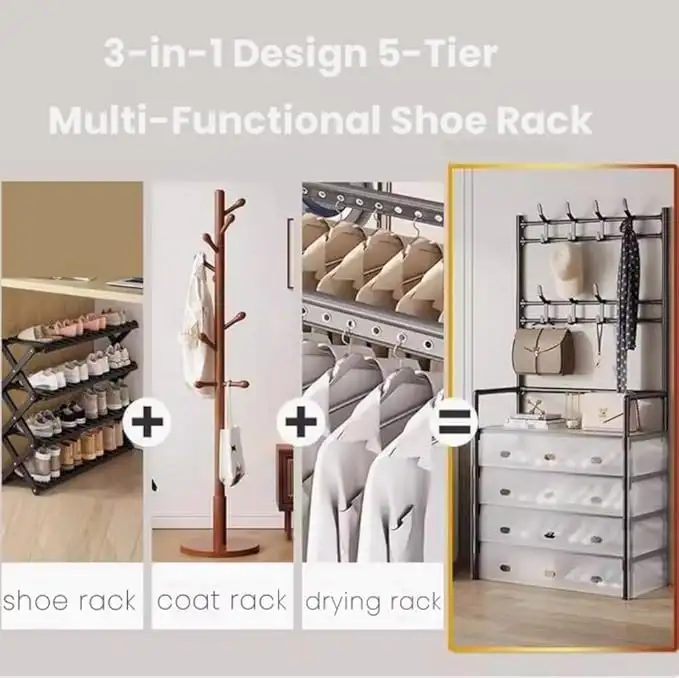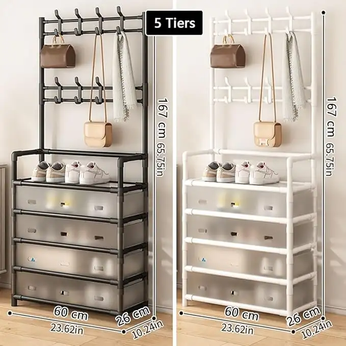 5-Layer Shoe and Coat Rack Dustproof Organizer 3-in-1 - (Black)