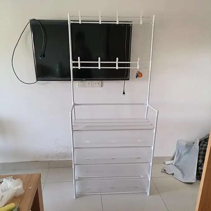 5-Layer Shoe and Coat Rack Dustproof Organizer 3-in-1 - (White)